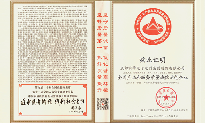 前鋒集團(tuán)榮獲2019年3·15產(chǎn)品和服務(wù)質(zhì)量誠(chéng)信示范企業(yè)