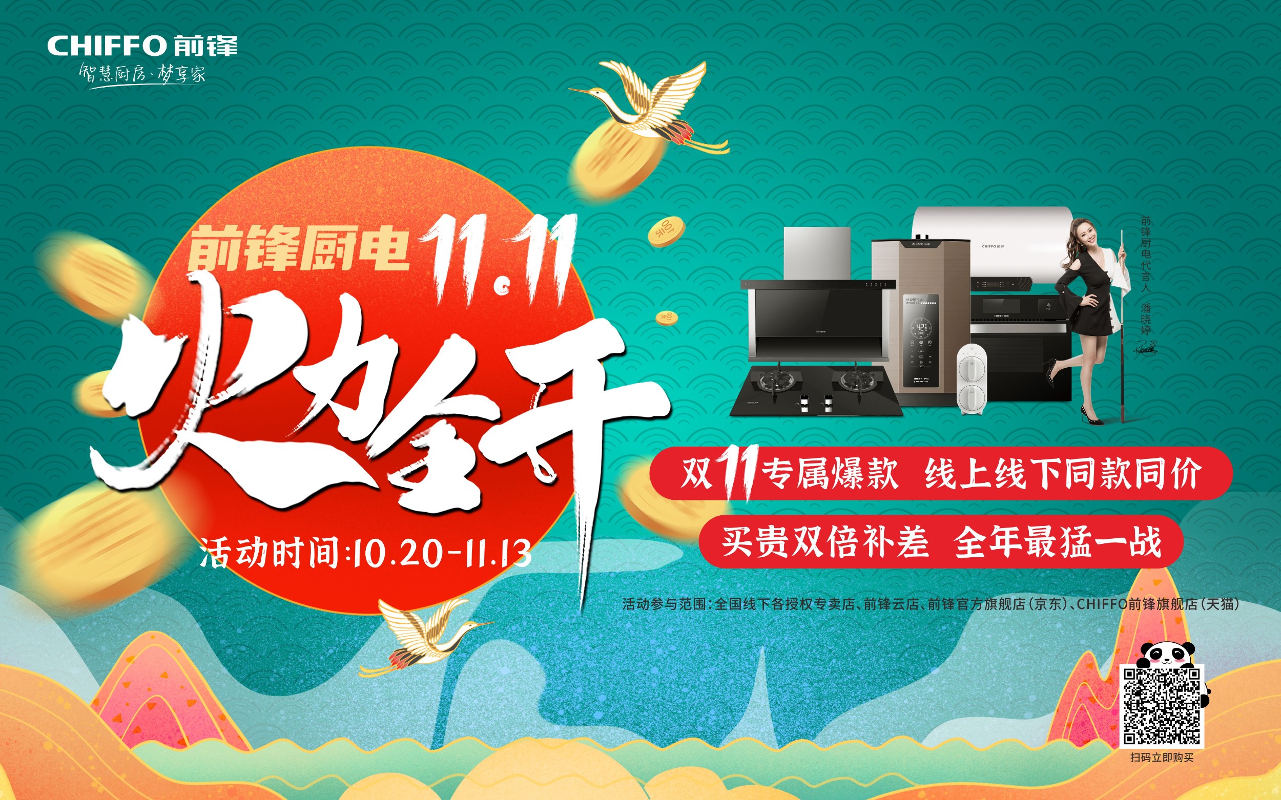 火力全開狂歡開啟 活動正式開啟啦!前鋒廚電雙11狂歡盛宴驚艷來襲! 10月20日—11月13日,前鋒廚電火力全開,全國千店同時