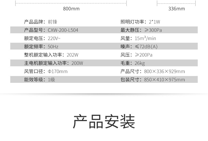 前鋒平板雙吸油煙機L504+