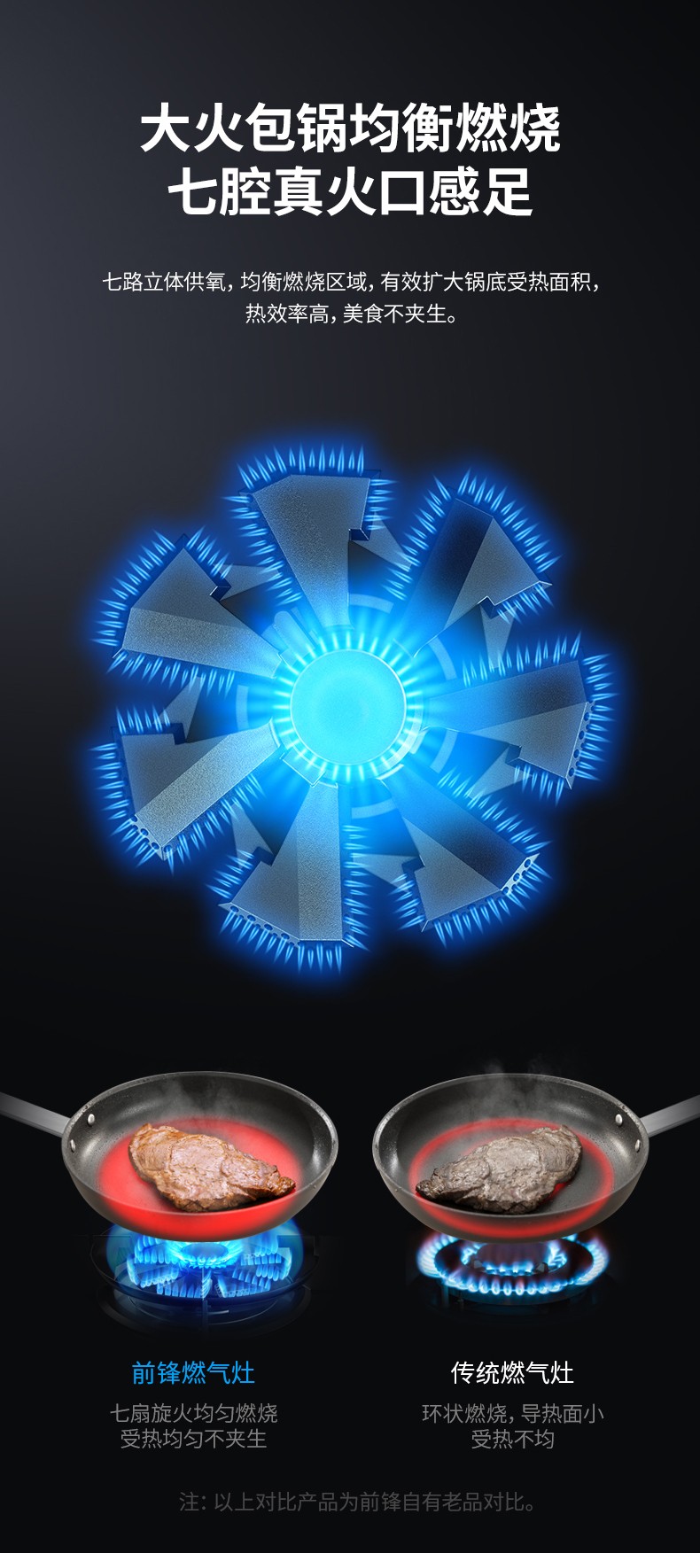 ,七通道分火器,旋轉(zhuǎn)火燃燒,火力集中,熱效率高;