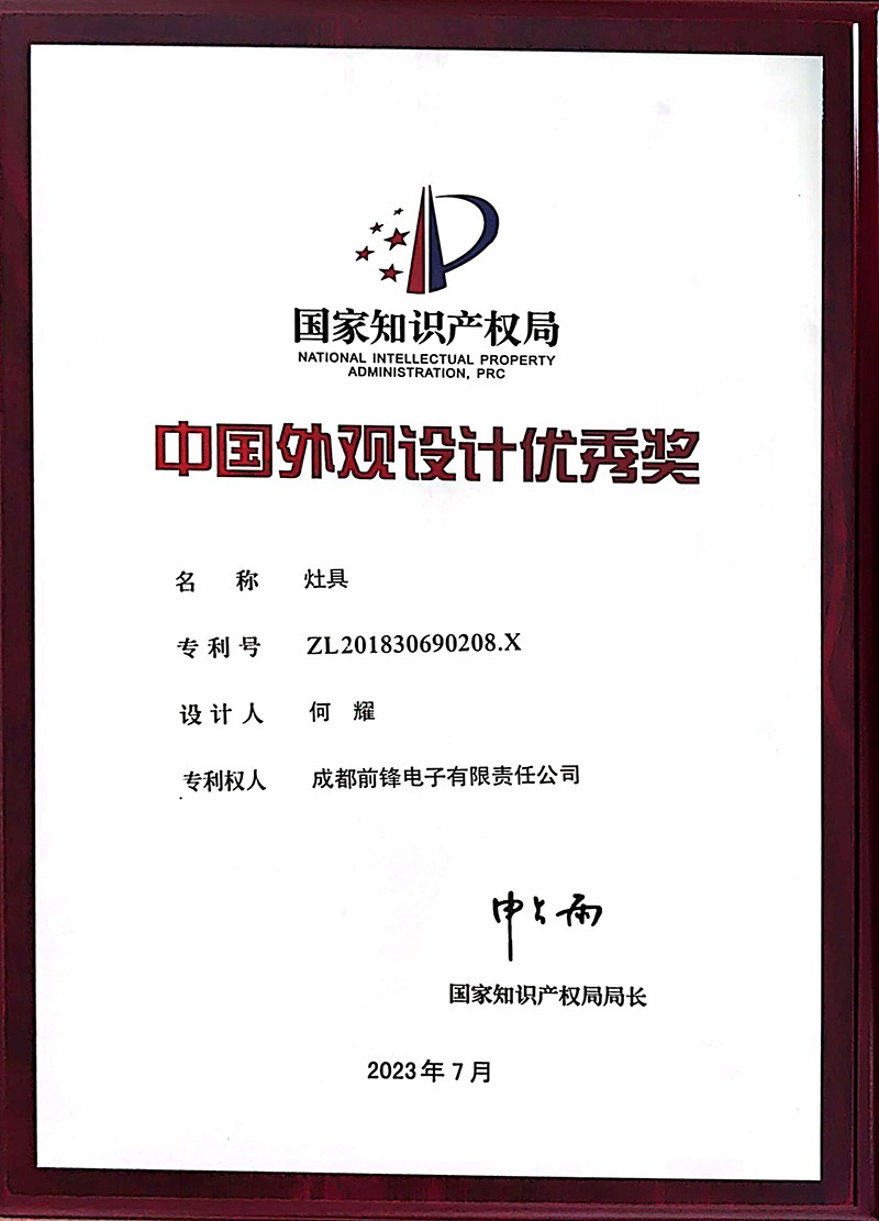獲得此次中國(guó)專利外觀設(shè)計(jì)優(yōu)秀獎(jiǎng)的燃?xì)庠?,融入了前鋒最新的科技創(chuàng)新設(shè)計(jì),并搭載前鋒專利