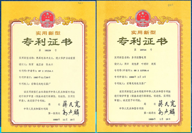 1986年,前鋒QFM14型熱水器誕生的,這是中國首臺雙保護(hù)(電脈沖點火技術(shù)和熄火保護(hù)裝置)燃?xì)鉄崴?,并正式將電脈沖點火技術(shù)和熄火保護(hù)裝置申請為前鋒專利,此雙重保護(hù)裝置專利技術(shù)填補了國內(nèi)熱水器安全的行業(yè)空白。