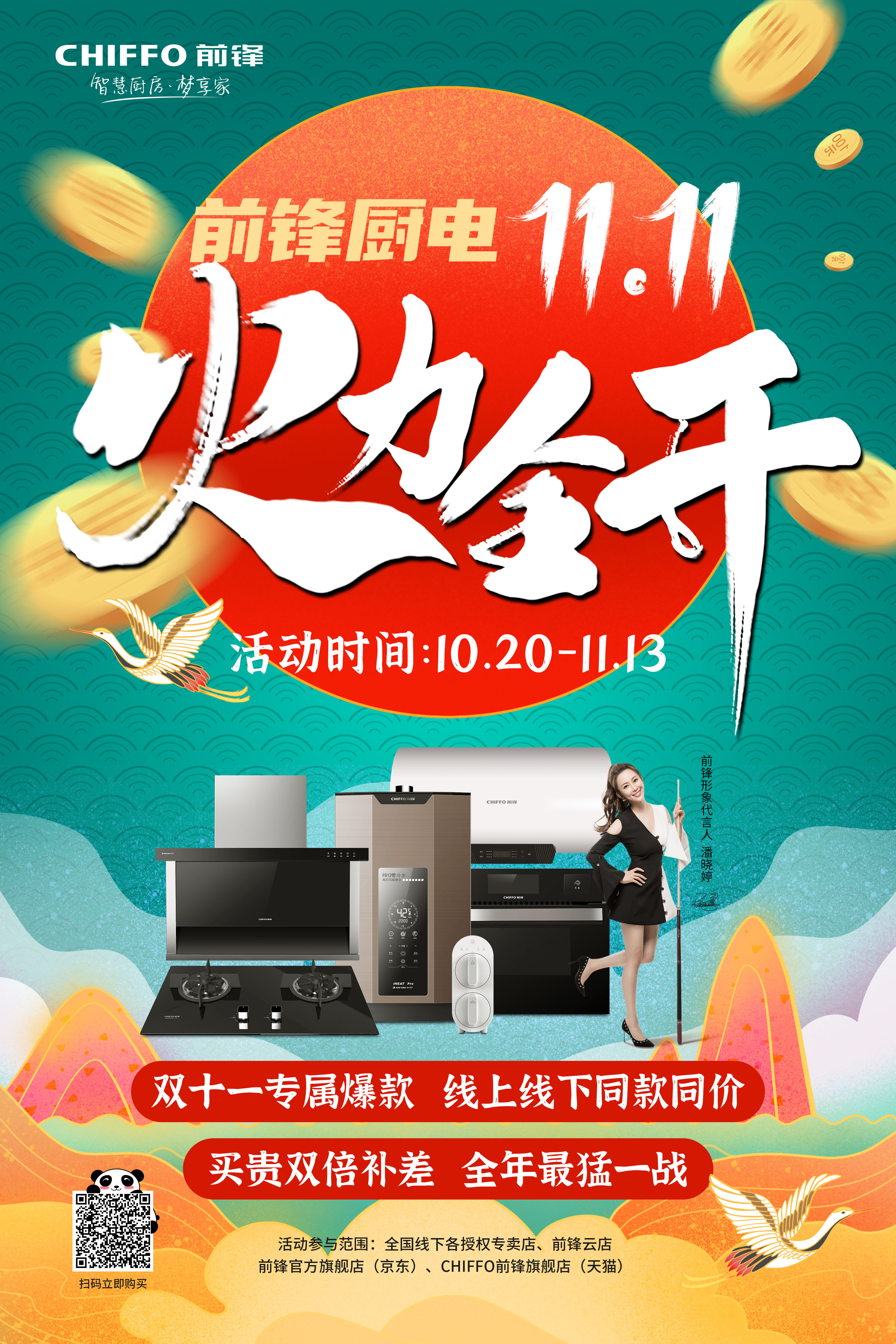 10月20日—11月13日,前鋒廚電火力全開,全國千店同時引爆,線上線下同步開啟。這場廚電“鋒暴”,勢必引爆雙11最強(qiáng)廚電主賣場!